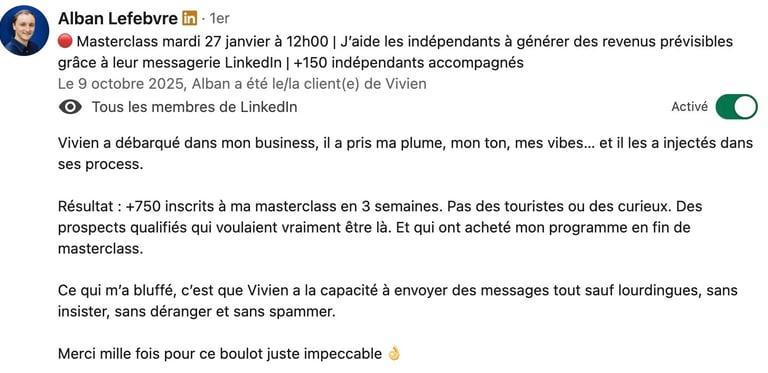 +750 inscrits à la masterclass en 3 semaines + 10k de CA